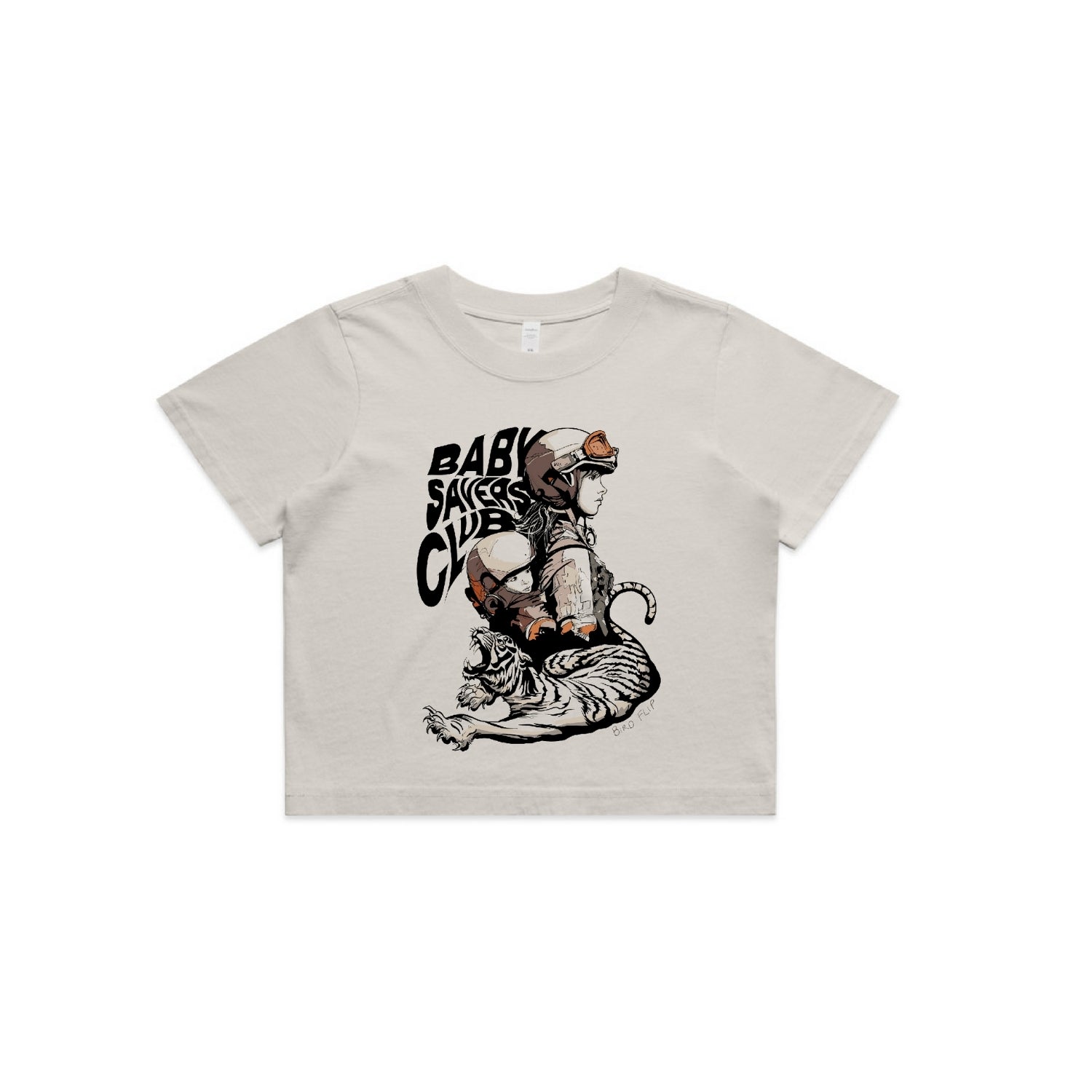 The Baby Savers Club Graphic Crop Tee is made on a premium AS Colour crop tee, offering a modern silhouette with a soft, structured feel. Featuring an exclusive hand drawn graphic by the Birdflip team, this piece balances simplicity with statement.